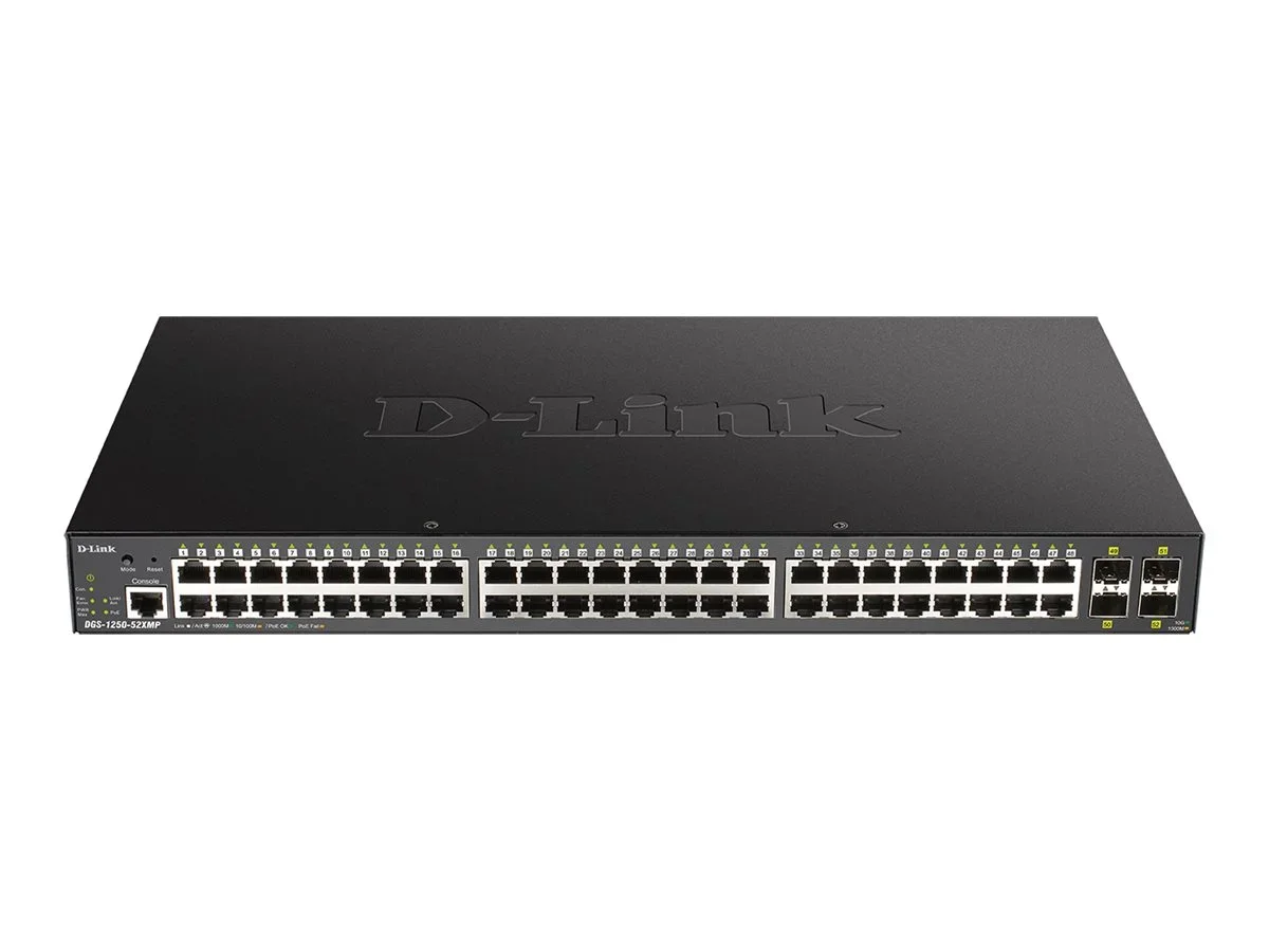 D-Link DGS 1250-52XMP - Switch - L3 Lite - Smart - 48 x 10/100/1000 (PoE) + 4 x 10 Gigabit SFP+ - an Rack montierbar - PoE (370 W)