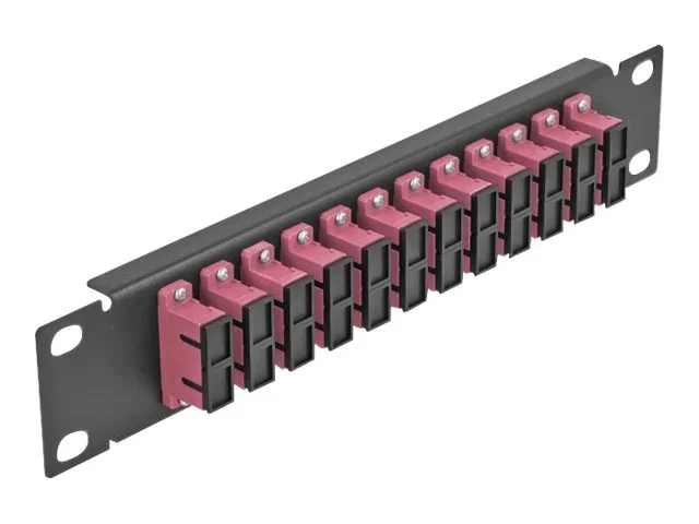 Dieses Patchpanel von Delock ist mit zwölf SC Duplex Kupplungen ausgestattet und eignet sich für den Einbau in einen 10" Netzwerkschrank. Mit den SC Duplex Kupplungen können LWL Stecker einfach miteinander verbunden werden.