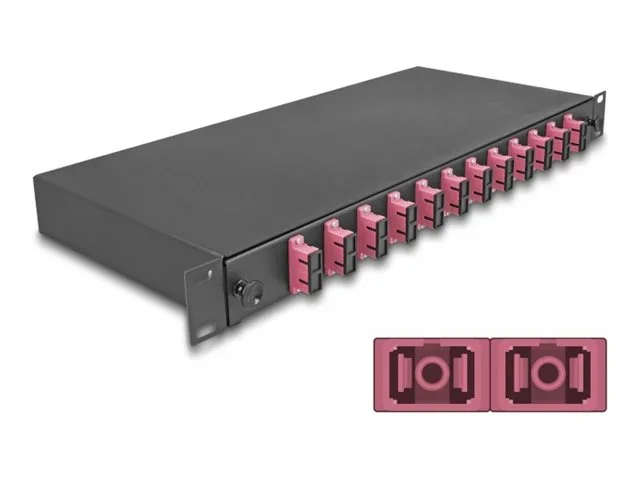 Delock - Glasfaserkabelkiste - OM4, montiert - Vorderseite - Rack montierbar - SC Duplex X 12 - Schwarz - 1U - 48.3 cm (19")