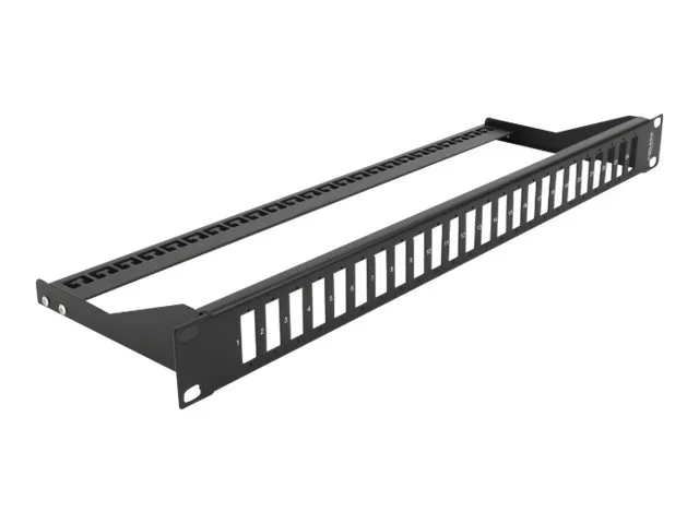 Dieses Patchpanel von Delock kann in einen 19? Geräteschrank eingebaut werden. Es bietet 24 Einbauplätze für die individuelle Montage von SC Duplex oder LC Quad Kupplungen.