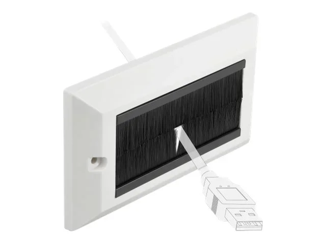 Delock Cable Management Cover 146 x 86 mm with black Brush Strips - Abdeckung Kabel-Aufbewahrungspaneel - geeignet für Wandmontage - weiß