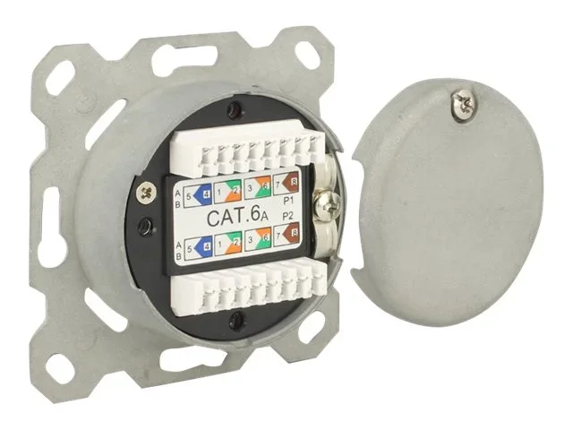 Delock Modular Wall Outlet flush mount 2 Port Cat.6A LSA - Anschlussdose, Unterputz - CAT 6 - STP - RJ-45 X 2 - Abdeckung mit einer Aussparung