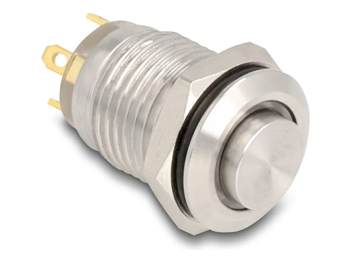 Delock - Drücktaster - für 12 mm Installation, 4 x Lötverbindung, blaue LED - an Schalttafel montierbar - Wechselstrom 230 V - Silber