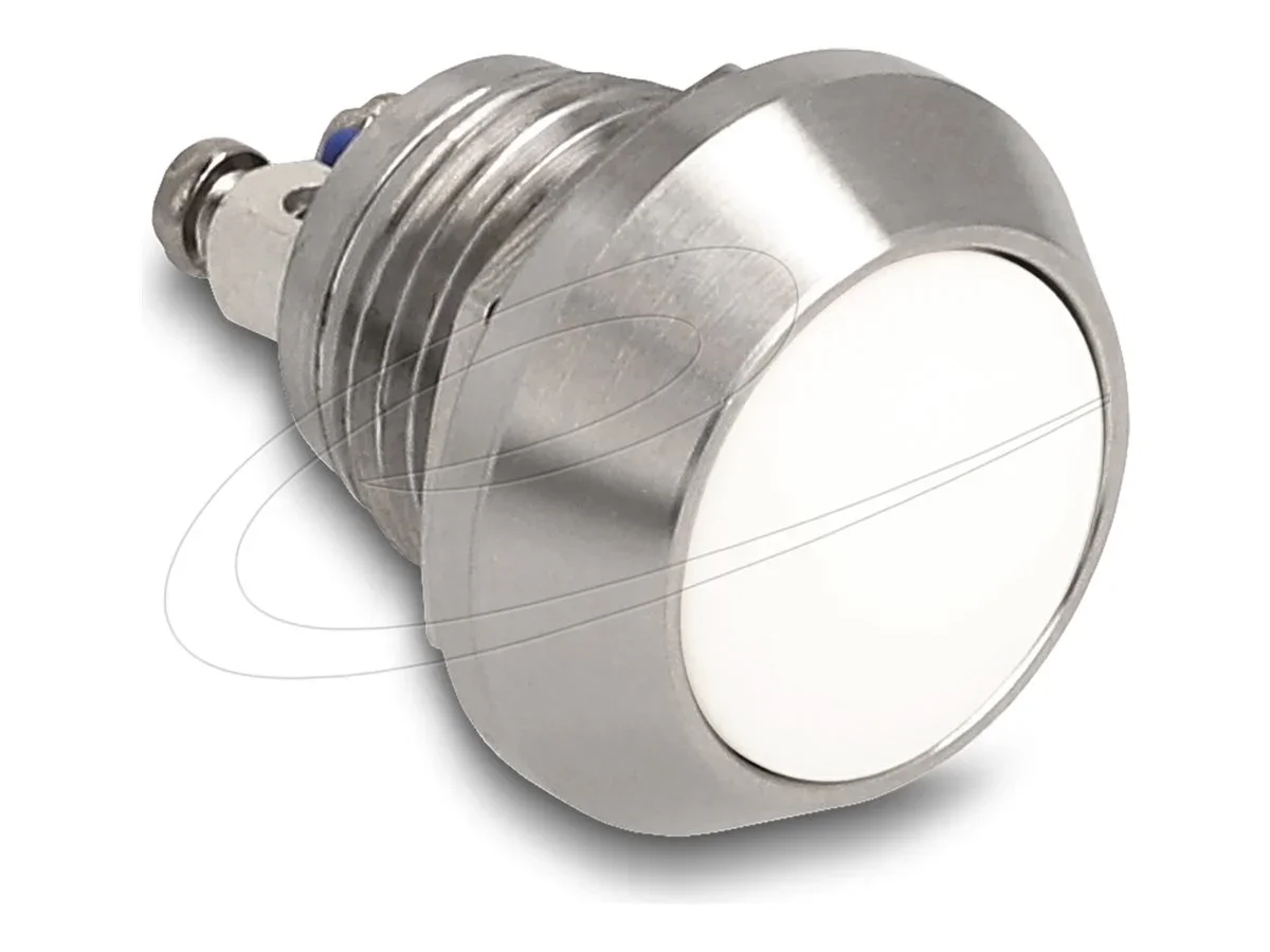 Delock - Drücktaster - für die Installation 12 mm, 2 x Schraubklemme - an Schalttafel montierbar - Wechselstrom 230 V - Silber, weiß