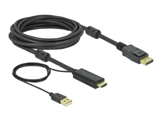 Delock - Video- / Audiokabel - HDMI, USB (nur Strom) männlich zu DisplayPort männlich - 5 m - Dreifachisolierung - Schwarz - 4K Unterstützung