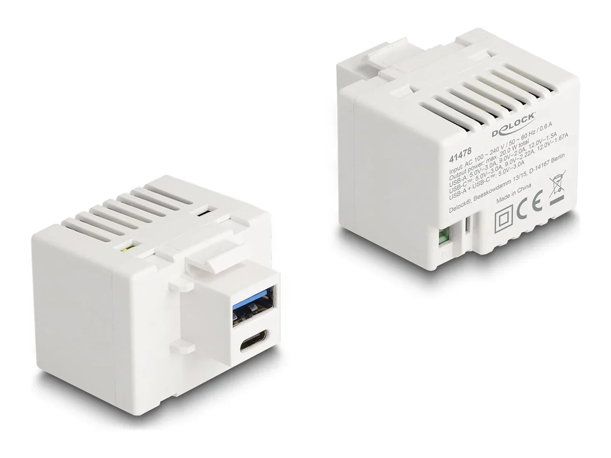 Dieses Delock-Netzteil bietet vielseitige Lademöglichkeiten mit zwei Ausgangsoptionen, darunter ein 9-poliger USB-Typ-A- und ein 24-poliger USB-C-Anschluss. Es liefert eine stabile Spannung von 5 V und eine Ausgangsleistung von 20 Watt und eignet sich somit für eine Vielzahl von Geräten. Das Netzteil verfügt über einen zweipoligen Anschlussblock-Eingangsstecker, der eine sichere Verbindung gewährleistet. Mit einer maximalen Stromstärke von 3 A erfüllt es den Strombedarf mehrerer Geräte gleichzeitig. Er ist mit einem Kurzschlussschutz ausgestattet und liefert zuverlässige Leistung bei gleichbleibender Ladeeffizienz. Unter normaler Last erreicht er eine Effizienz von bis zu 86,8 % und unter geringer Last eine Effizienz von 75,1 %. Die Power Delivery-Technologie ermöglicht schnelles Laden und sorgt dafür, dass Geräte schnell und effizient aufgeladen werden.