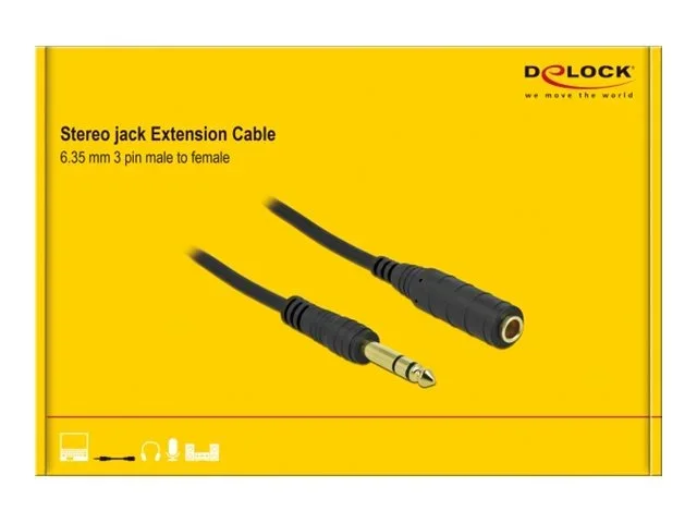 Dieses Klinkenkabel von Delock dient als Verlängerung einer 6,35 mm Klinkenverbindung. Somit kann das Kabel z. B. beim Anschluss von Kopfhörern an ein Soundsystem eingesetzt werden.