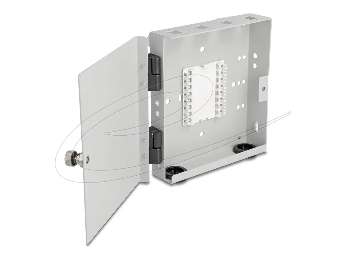 Die Delock Glasfaser-Anschlussbox ist eine zuverlässige Lösung für Glasfaserverkabelungen. Diese Wandbox wurde für die Montage in Innenräumen entwickelt und besteht aus strapazierfähigem Metall, wodurch eine lange Lebensdauer unter verschiedenen Umgebungsbedingungen mit Betriebstemperaturen von -10 °C bis 80 °C gewährleistet ist. Sie ist mit Duplex-LC- und Simplex-SC-Steckern kompatibel und bietet somit Flexibilität bei den Installationsanforderungen. Diese Anschlussbox enthält wichtige Komponenten für die Einrichtung, wie z. B. eine Schlauchklemme, einen Satz Schrauben, Kabelbinder und einen Schrumpfschlauch zum Schutz der Spleiße. Mit vier verfügbaren Steckplätzen für Glasfaserspleiße sowie einem Spleißhalter erfüllt dieses Produkt vielfältige Anschlussanforderungen und trägt zu einer übersichtlichen Einrichtung bei. Das Design verfügt über Befestigungslöcher und runde Kabeldurchführungen, wodurch die Installation in verschiedenen Anwendungen einfach und effizient ist.