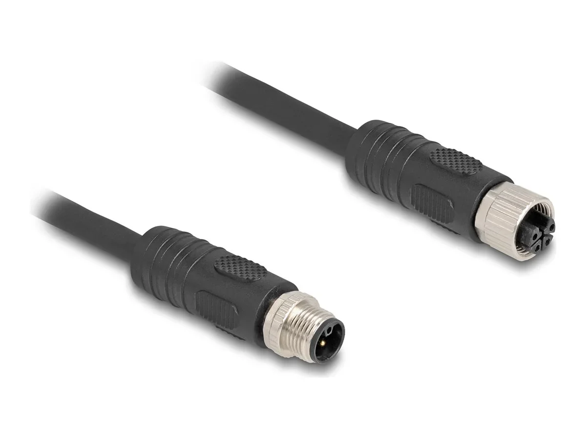 Delock - Sensorverlängerungskabel - M12 (4-polig) (M) zu M12 (4-polig) (W) - 63 V - 12 A - 3 m - silikonfrei, Zugkette, L-codiert - Schwarz