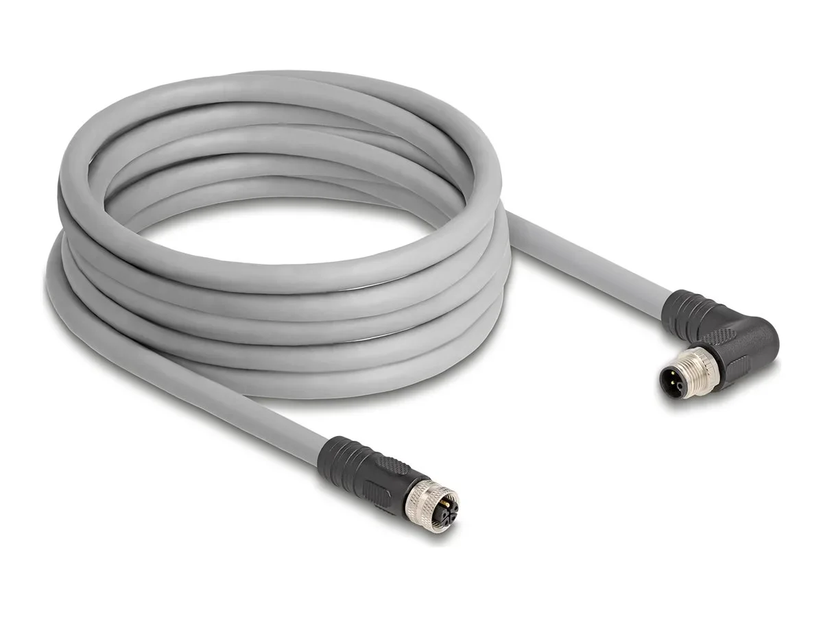Delock - Sensorkabel - M12 (5-polig) (M) rechtwinklig zu M12 (5-polig) (W) gerade - 63 V - 16 A - 5 m - silikonfrei, L-codiert - Grau