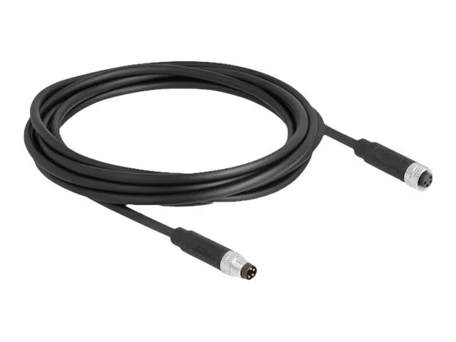Delock - Patch-Kabel - 4-poliger M8 (M) zu 4-poliger M8 (W) - 3 m - 5 mm - STP - IP67 - Schwarz
