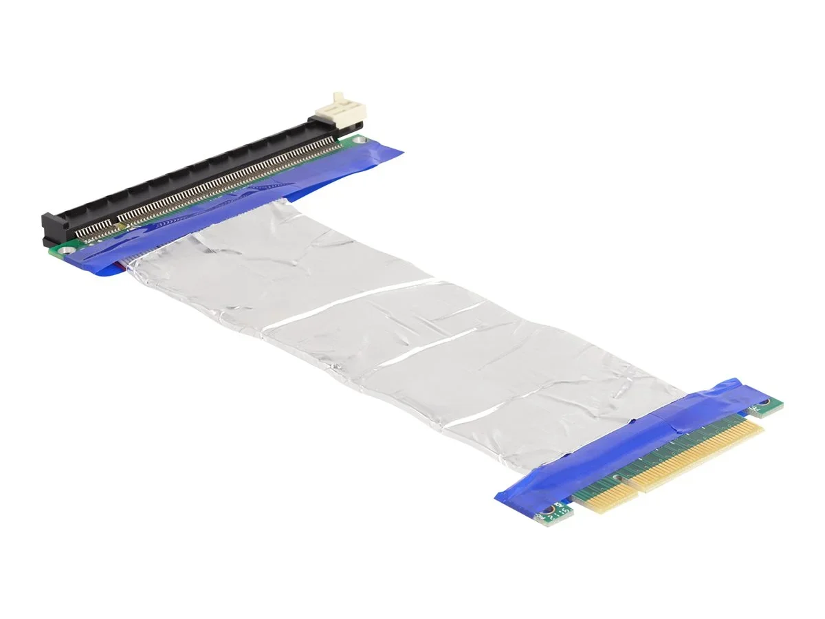 Diese PCI Express Riser Card von Delock dient zum Anschluss einer PCI Express x8 Karte. Das flexible Kabel ermöglicht einen platzsparenden Einbau im Computergehäuse.