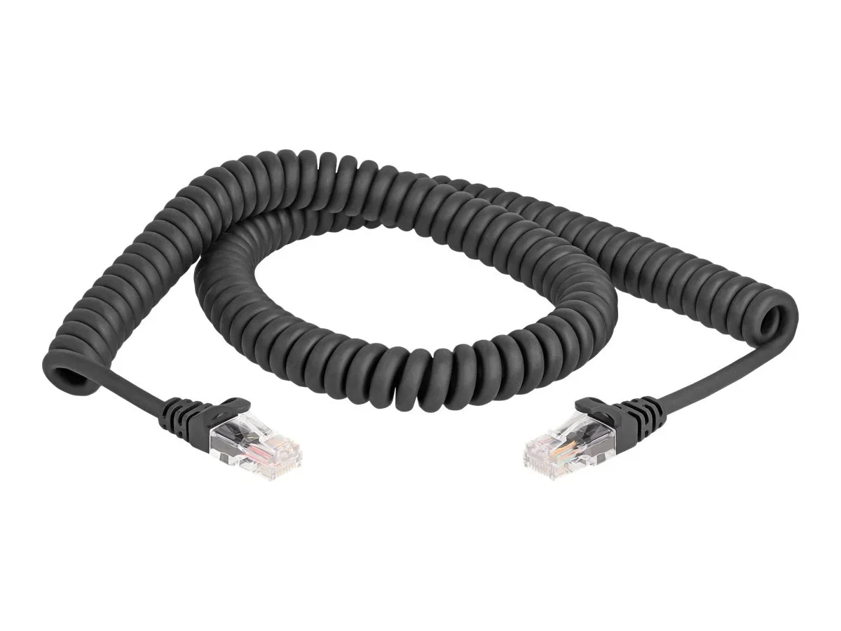 Delock - Netzwerkkabel - RJ-45 (M) zu RJ-45 (M) - 2 m - 5 mm - CAT 5e - geformt, ohne Haken, Spirale - Schwarz