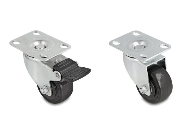 Delock - Steckgehäuse-Rollensatz - schwerlast, 50 mm Durchmesser, Tragfähigkeit bis zu 400 kg - Schwarz, Silber
