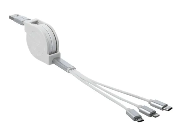 Delock - Lightning-Kabel - USB männlich zu Micro-USB Typ B, Lightning, USB-C männlich - 98 cm - weiß - einziehbar, flach