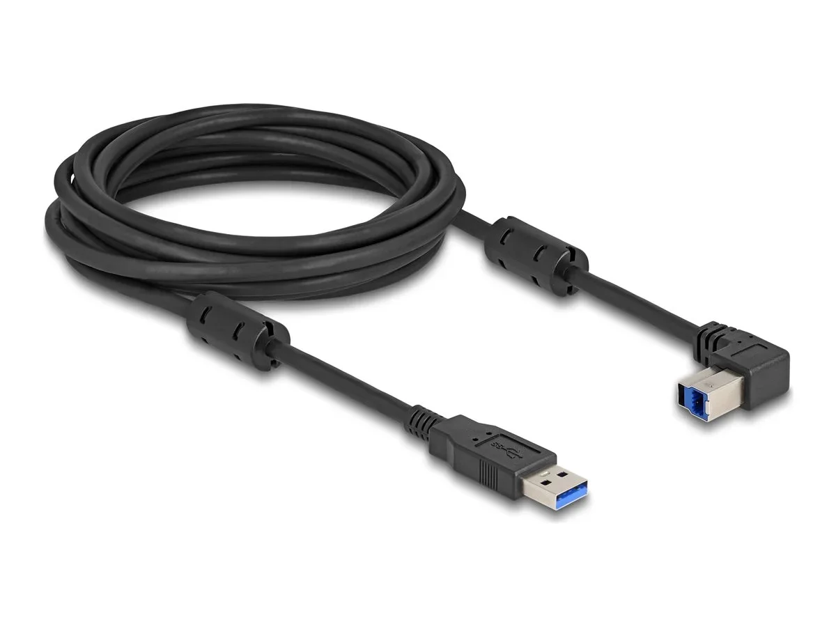 Das Delock USB-Kabel bietet eine zuverlässige Verbindung mit USB 3.0-Konformität und gewährleistet eine Hochgeschwindigkeits-Datenübertragung von bis zu 5 Gbit/s. Das Kabel ist doppelt geschirmt und verfügt über vergoldete Stifte. Dadurch werden Interferenzen reduziert und die Haltbarkeit für eine längere Nutzung erhöht. Der linke Stecker verfügt über einen geraden 9-poligen USB-Typ-A-Anschluss, während der rechte Stecker mit einem um 90° nach oben abgewinkelten 9-poligen USB-Typ-B-Anschluss ausgestattet ist, was ihn für verschiedene Konfigurationen geeignet macht.