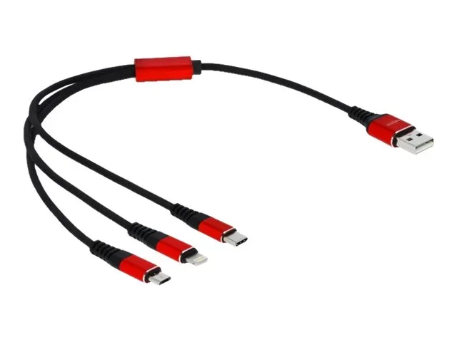 Delock 3 in 1 - Kabel nur zum Laden - USB männlich zu Micro-USB Typ B, Lightning, USB-C männlich - 30 cm - abgeschirmt - Schwarz
