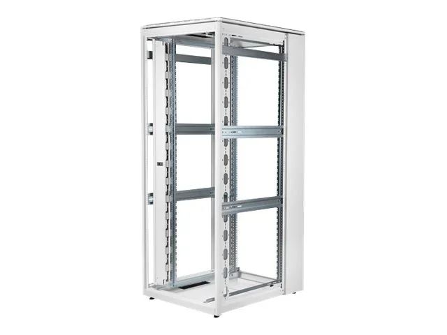 Im Sonderfall kann eine Demontage der Schränke erfolgen, um auch schwer zugängliche Aufstellungsorte zu erreichen. Die Türen lassen sich leicht demontieren, ein Türanschlagswechsel kann vorgenommen werden. Das Dach ist ausgestattet mit einem abgesetzten Deckel inkl. Lüftungsschlitzen für eine verbesserte Luftzirkulation. Des Weiteren ist das Dach vorbereitet für die Aufnahme eines Lüftermoduls zur aktiven Entlüftung. Die Netzwerkschränke beinhalten 2 Paare (4 Stück) montierte 483 mm (19")-Profilschienen im Inneren. Diese sind galvanisiert und mit einer Markierung der Höheneinheit versehen (zählbar in beide Richtungen). Sie lassen sich in der Tiefe verstellen und sind zusätzlich mit Tiefenstreben im Schrank verbunden um so einen intensiven Ausbau mit 483 mm (19")-Komponenten zu ermöglichen.
