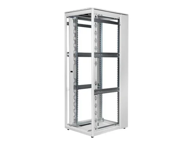 Im Sonderfall kann eine Demontage der Schränke erfolgen, um auch schwer zugängliche Aufstellungsorte zu erreichen. Die Türen lassen sich leicht demontieren, ein Türanschlagswechsel kann vorgenommen werden. Das Dach ist ausgestattet mit einem abgesetzten Deckel inkl. Lüftungsschlitzen für eine verbesserte Luftzirkulation. Des Weiteren ist das Dach vorbereitet für die Aufnahme eines Lüftermoduls zur aktiven Entlüftung. Die Netzwerkschränke beinhalten 2 Paare (4 Stück) montierte 483 mm (19")-Profilschienen im Inneren. Diese sind galvanisiert und mit einer Markierung der Höheneinheit versehen (zählbar in beide Richtungen). Sie lassen sich in der Tiefe verstellen und sind zusätzlich mit Tiefenstreben im Schrank verbunden um so einen intensiven Ausbau mit 483 mm (19")-Komponenten zu ermöglichen.