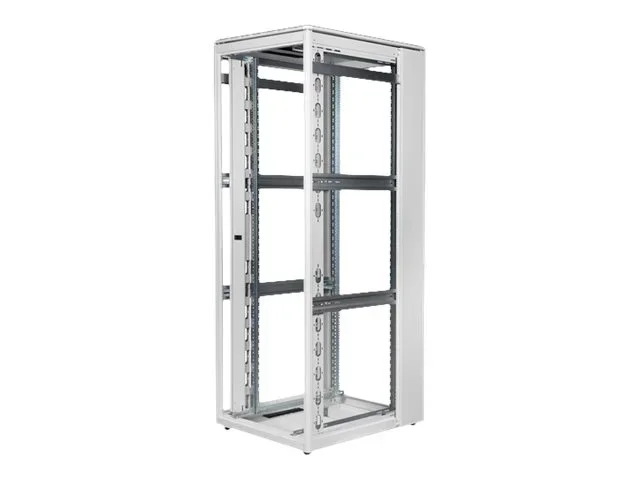 Im Sonderfall kann eine Demontage der Schränke erfolgen, um auch schwer zugängliche Aufstellungsorte zu erreichen. Die Türen lassen sich leicht demontieren, ein Türanschlagswechsel kann vorgenommen werden. Das Dach ist ausgestattet mit einem abgesetzten Deckel inkl. Lüftungsschlitzen für eine verbesserte Luftzirkulation. Des Weiteren ist das Dach vorbereitet für die Aufnahme eines Lüftermoduls zur aktiven Entlüftung. Die Netzwerkschränke beinhalten 2 Paare (4 Stück) montierte 483 mm (19")-Profilschienen im Inneren. Diese sind galvanisiert und mit einer Markierung der Höheneinheit versehen (zählbar in beide Richtungen). Sie lassen sich in der Tiefe verstellen und sind zusätzlich mit Tiefenstreben im Schrank verbunden um so einen intensiven Ausbau mit 483 mm (19")-Komponenten zu ermöglichen.