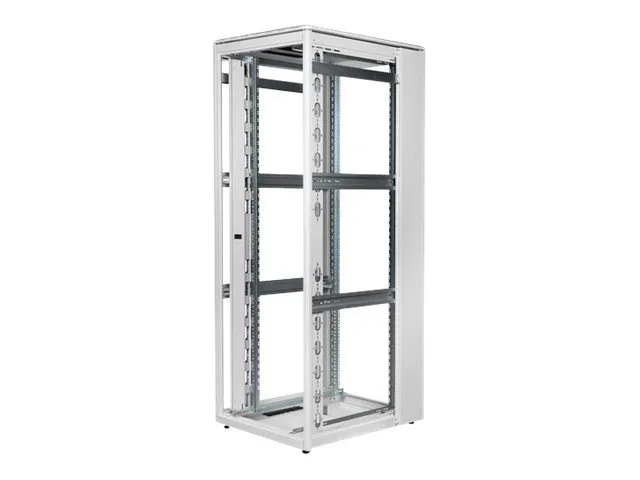 Im Sonderfall kann eine Demontage der Schränke erfolgen, um auch schwer zugängliche Aufstellungsorte zu erreichen. Die Türen lassen sich leicht demontieren, ein Türanschlagswechsel kann vorgenommen werden. Das Dach ist ausgestattet mit einem abgesetzten Deckel inkl. Lüftungsschlitzen für eine verbesserte Luftzirkulation. Des Weiteren ist das Dach vorbereitet für die Aufnahme eines Lüftermoduls zur aktiven Entlüftung. Die Netzwerkschränke beinhalten 2 Paare (4 Stück) montierte 483 mm (19")-Profilschienen im Inneren. Diese sind galvanisiert und mit einer Markierung der Höheneinheit versehen (zählbar in beide Richtungen). Sie lassen sich in der Tiefe verstellen und sind zusätzlich mit Tiefenstreben im Schrank verbunden um so einen intensiven Ausbau mit 483 mm (19")-Komponenten zu ermöglichen.