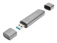 Der Dual Kartenleser von DIGITUS mit integriertem USB-Hub (OTG) kann wahlweise am Smartphone, Tablet oder Notebook angeschlossen werden, so können Sie auf eingesteckte Speichermedien wie z. B. USB-Sticks, SD- oder mircoSD-Speicherkarten zugreifen. Sie können das Gerät entweder über den USB A (USB 3.0) oder über den USB-C -Stecker des Hubs anschließen. Der USB-Hub kann zeitgleich mit dem Speicherkartenleser genutzt werden, so können auch Dateien zwischen beiden Anschlüssen verschoben oder kopiert werden. Die Installation von Treibern oder Apps ist dank Plug and Play nicht notwendig. Ideal beispielsweise zur Sicherung von Urlaubsfotos direkt vor Ort, ohne ein Notebook nutzen zu müssen.