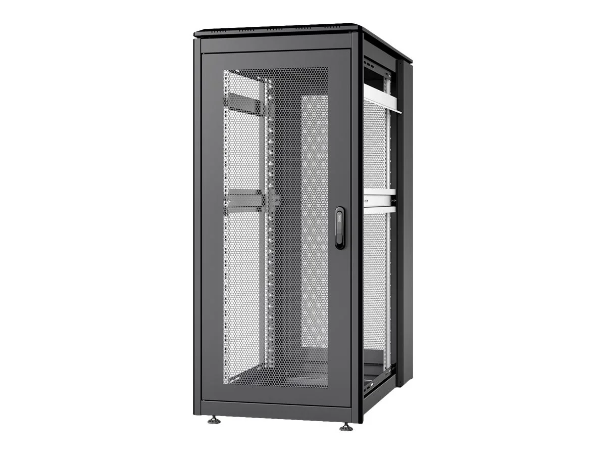 Die Netzwerk-Racks der Unique-Serie wurden für den benutzerfreundlichen Einbau von aktiven und passiven Netzwerkkomponenten bei gleichzeitig sauberem Kabelmanagement konzipiert. Jedes Rack besteht aus bis zu 1,5 mm starkem Stahlblech, das als robuste Stahlkonstruktion durch eine spezielle Blechbiegetechnik eine sehr gute Stabilität gewährleistet. Für bestimmte Bedingungen, bei denen der Aufstellort schwer erreichbar ist, kann das Rack zerlegt werden. Die Türen lassen sich leicht abnehmen und der Türanschlag kann von rechts nach links gewechselt werden. Das Dach ist mit einem zusätzlichen Deckel versehen, der Lüftungsschlitze für eine bessere Luftzirkulation enthält. Außerdem ist das Dach für die Montage eines Lüftungsgerätes vorbereitet. Jedes Netzwerkregal enthält 2 Paar (4 Stück) 483 mm (19") Profilschienen im Inneren, die verzinkt und mit Höheneinheitskennzeichnung (aus beiden Richtungen zählbar) sind. Sie sind in der Tiefe variabel und mit zusätzlichen Tiefenstreben verbunden, um umfangreiche 483 mm (19") Geräteeinbauten zu realisieren. Ein wichtiger Aspekt bei jeder Installation ist das Kabelmanagement. Der Boden jedes Racks ist mit einer verschiebbaren Kabeleinführungsplatte mit Gummidichtung ausgestattet. Racks ab 26 HE verfügen über zwei Kabeleinführungen mit Bürstenleisten auf der Rückseite ober- und unterhalb der Tür.