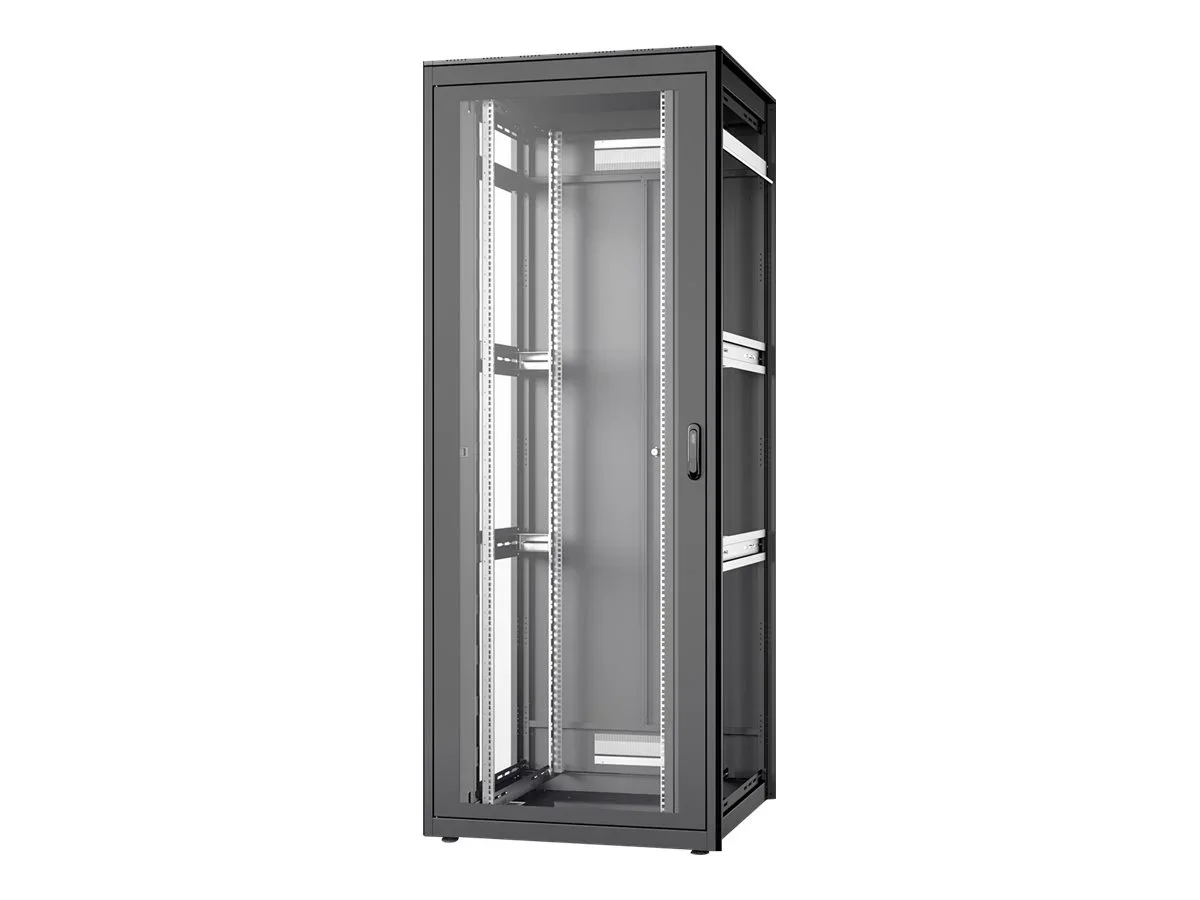 Die Netzwerk-Racks der Unique-Serie wurden für den benutzerfreundlichen Einbau von aktiven und passiven Netzwerkkomponenten bei gleichzeitig sauberem Kabelmanagement konzipiert. Jedes Rack besteht aus bis zu 1,5 mm starkem Stahlblech, das als robuste Stahlkonstruktion durch eine spezielle Blechbiegetechnik eine sehr gute Stabilität gewährleistet. Für bestimmte Bedingungen, bei denen der Aufstellort schwer erreichbar ist, kann das Rack zerlegt werden. Die Türen lassen sich leicht abnehmen und der Türanschlag kann von rechts nach links gewechselt werden. Das Dach ist mit einem zusätzlichen Deckel versehen, der Lüftungsschlitze für eine bessere Luftzirkulation enthält. Außerdem ist das Dach für die Montage eines Lüftungsgerätes vorbereitet. Jedes Netzwerkregal enthält 2 Paar (4 Stück) 483 mm (19") Profilschienen im Inneren, die verzinkt und mit Höheneinheitskennzeichnung (aus beiden Richtungen zählbar) versehen sind. Sie sind in der Tiefe variabel und mit zusätzlichen Tiefenstreben verbunden, um umfangreiche 483 mm (19") Geräteeinbauten zu realisieren. Ein wichtiger Aspekt bei jeder Installation ist das Kabelmanagement. Der Boden jedes Racks ist mit einer verschiebbaren Kabeleinführungsplatte mit Gummidichtung ausgestattet. Racks ab 26 HE verfügen über zwei Kabeleinführungen mit Bürstenleisten auf der Rückseite ober- und unterhalb der Tür. Bei Schränken mit 800 mm Breite werden die Möglichkeiten des Kabelmanagements durch zusätzliche Kabeleinführungen mit Bürsten links und rechts im Ober- und Untergestell erweitert. Darüber hinaus sind an den 483 mm (19")-Profilschienen in der Front (bei Schränken ab 800 mm Breite) vertikale Kabelkanäle mit Blende links und rechts montiert. Ein umfangreiches Portfolio an Zubehör für Kabelmanagement, Fachböden etc. hilft, viele Anforderungen im täglichen Einsatz zu erfüllen.