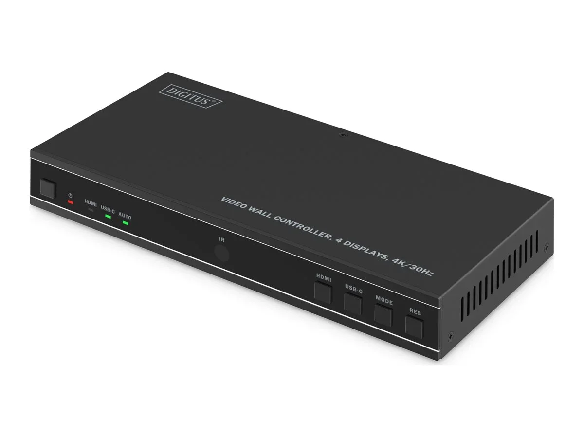 Der DIGITUS DS-55358 Video Wall Manager wurde für die Verwaltung hochwertiger Videoanzeigen entwickelt und bietet 4K30-Signalunterstützung und HDCP 2.2-Kompatibilität für die Kompatibilität mit verschiedenen Inhaltsquellen. Dieses Gerät ist mit mehreren elektrischen Schnittstellen ausgestattet, darunter HDMI-Ein- und Ausgang, USB, RS-232 und analoger Audioausgang, was vielseitige Anschlussmöglichkeiten ermöglicht. Das Metallgehäuse schützt die internen Komponenten und bietet Langlebigkeit und Stabilität für anspruchsvolle Umgebungen.