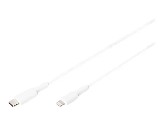DIGITUS - Lightning-Kabel - USB-C männlich zu Lightning männlich - 1 m - Doppelisolierung - weiß - geformt, USB Power Delivery (18W)
