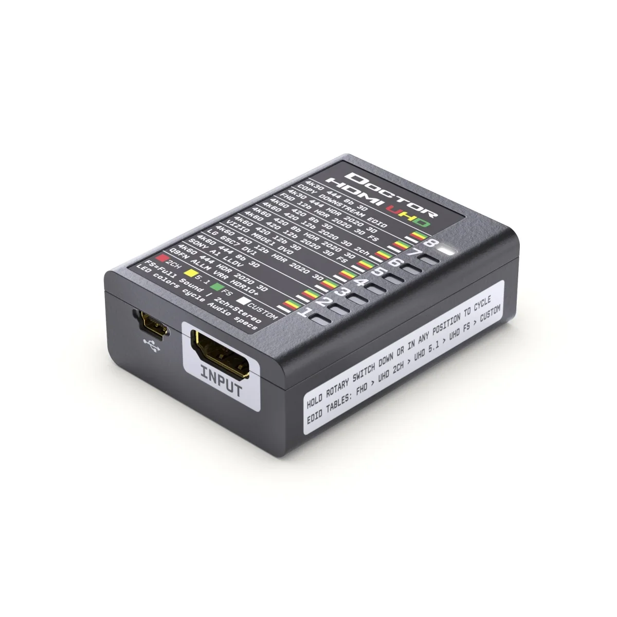 Doctor HDMI 4K löst die meisten HDCP / HDMI-Probleme, indem er einfach zwischen Quelle und Display angeschlossen wird. Nach dem Anschluss kann er so eingestellt werden, dass bestimmte EDID- und Hot-Plug-Ereignisse durchgeführt werden.
