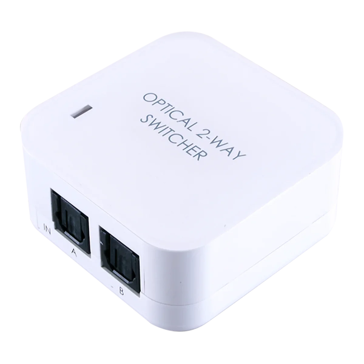 The Optical Digital Audio Switcher can switch two optical digital inputs to a single optical digital output to lengths of up to 5m, using TOSLink optical cables, reliably and without loss of quality. It is designed to be compact, easy to install and use, making it ideal for home or professional audio distribution.