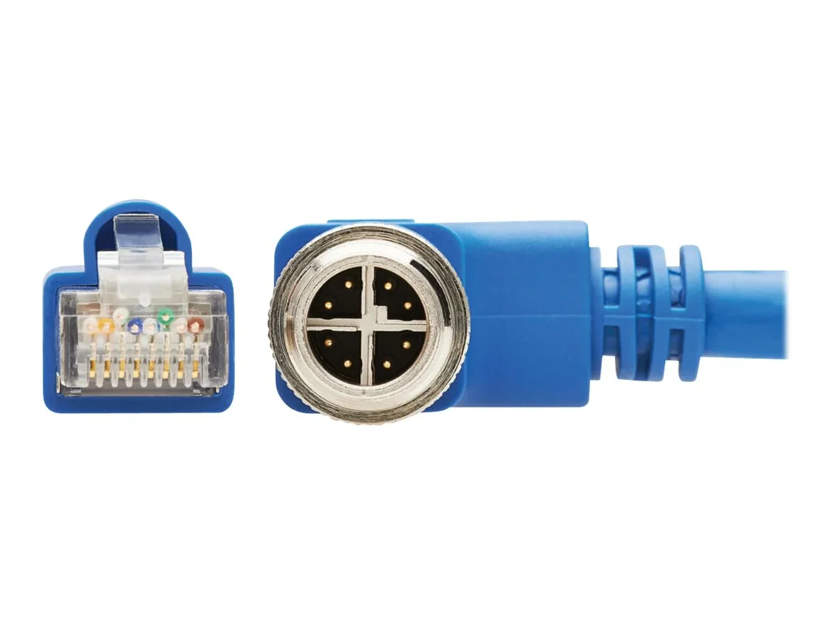 Das M12 X-Code Cat6a 10G F/UTP CMR-LP Shielded Ethernet Cable von Eaton Tripp Lite bietet zuverlässige Netzwerkverbindungen für verschiedene Anwendungen. Dieses Ethernet-Kabel unterstützt bis zu 60 W PoE durch seine hochwertigen Kupferleiter und gewährleistet eine effiziente Stromversorgung neben der Datenübertragung. Die robuste blaue PVC-Ummantelung und das knickfreie Design machen das Kabel widerstandsfähig gegen unterschiedliche Umgebungen und sorgen für eine saubere Installation. Damit eignet es sich sowohl für den Innen- als auch für den Außenbereich, wo IP68-Schutz erforderlich ist. Das Kabel ist an einem Ende mit einem rechtwinkligen M12-X-Stecker und am anderen Ende mit einem RJ-45-Stecker ausgestattet, was Flexibilität bei engen Platzverhältnissen bietet. Diese Anordnung minimiert die Belastung der Kabel und erhöht die Haltbarkeit bei gleichbleibender Leistung. Durch die Einhaltung der RoHS- und REACH-Normen erfüllt es die Umweltvorschriften und ist damit eine verantwortungsbewusste Wahl für Unternehmen, die Nachhaltigkeit und gleichzeitig hochwertige Installationen sicherstellen wollen.