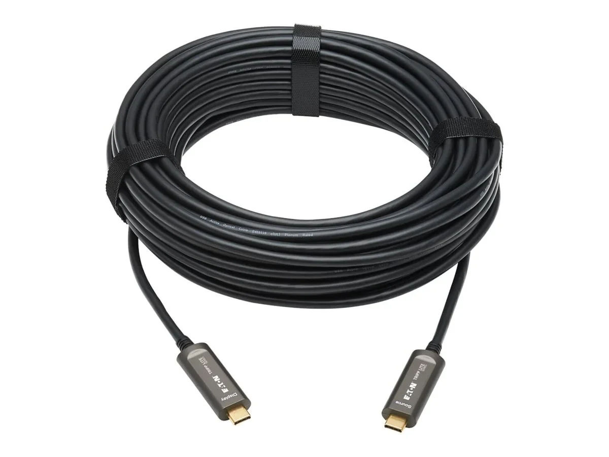 Das Eaton Tripp Lite Series U420F-15M-V ist ein vielseitiges USB-C-Kabel, das Leistung und Zuverlässigkeit bietet. Mit einer maximalen Auflösung von 3840 x 2160 bei 60 Hz unterstützt dieses Kabel High Dynamic Range (HDR) und 3D-Videos und sorgt so für eine lebendige visuelle Wiedergabetreue. Das Active Optical Cable (AOC)-Design verbessert die Fähigkeit, Daten über größere Entfernungen ohne Qualitätsverlust zu übertragen und eignet sich daher für anspruchsvolle Multimedia-Anwendungen.