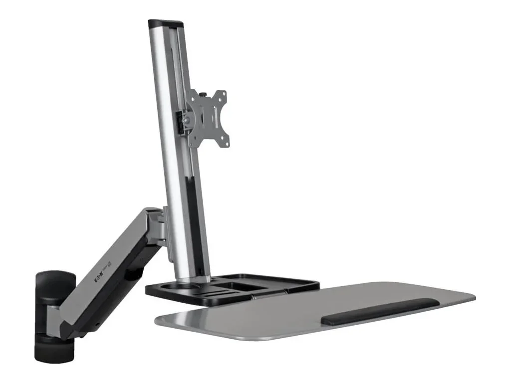 Die Eaton Tripp Lite Serie WorkWise Wall-Mounted Workstation, Single Display, ist eine Lösung zur Verbesserung Ihrer Arbeitsumgebung. Dieses aus robustem Kunststoff und Stahl gefertigte Montageset unterstützt LCD-Displays, Tastaturen und Mäuse und ist damit die ideale Wahl für Benutzer, die einen umfassenden und ergonomischen Arbeitsplatz suchen. Es bietet eine Vielzahl von Einstellmöglichkeiten, darunter eine 360°-Drehung und eine 180°-Schwenkung, so dass Sie den perfekten Blickwinkel finden und die Belastung während langer Arbeitszeiten verringern können. Die Workstation ist mit Bildschirmgrößen von 13" bis 32" kompatibel und bietet somit Vielseitigkeit für unterschiedliche Benutzeranforderungen. Darüber hinaus enthält das Paket alle erforderlichen Montagekomponenten wie dekorative Abdeckungen, eine Armhalterung, eine Tastaturablage und Montagematerial, die eine reibungslose und unkomplizierte Installation ermöglichen. Er ist für die Wandmontage konzipiert und eignet sich perfekt zur Optimierung des Platzes auf dem Schreibtisch und zur Schaffung eines organisierten und effizienten Arbeitsbereichs.