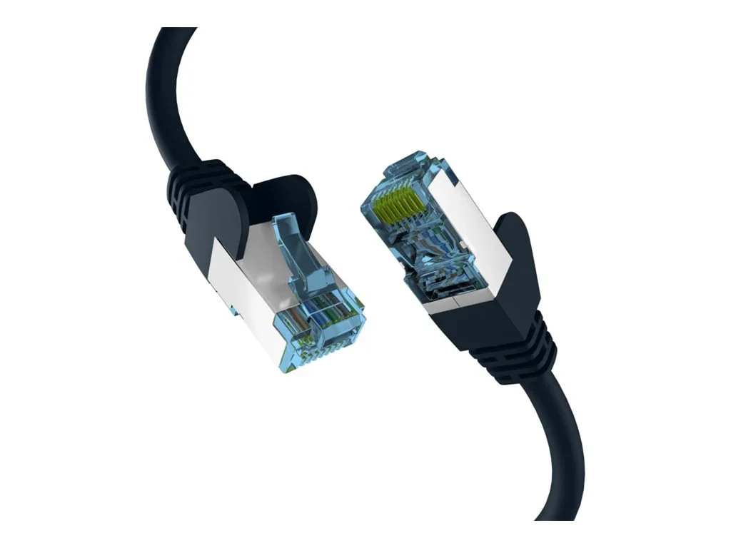 EFB-Elektronik - Patch-Kabel - RJ-45 (M) zu RJ-45 (M) - 3 m - 6 mm - S/FTP, PiMF - CAT 7 (Kabel) / CAT 6a (Anschlüsse) - geschirmt, halogenfrei, geformt, verseilt, Knickschutzmanschette, 10 Gigabit Ethernet, Steckerbelegung 1:1 - Schwarz