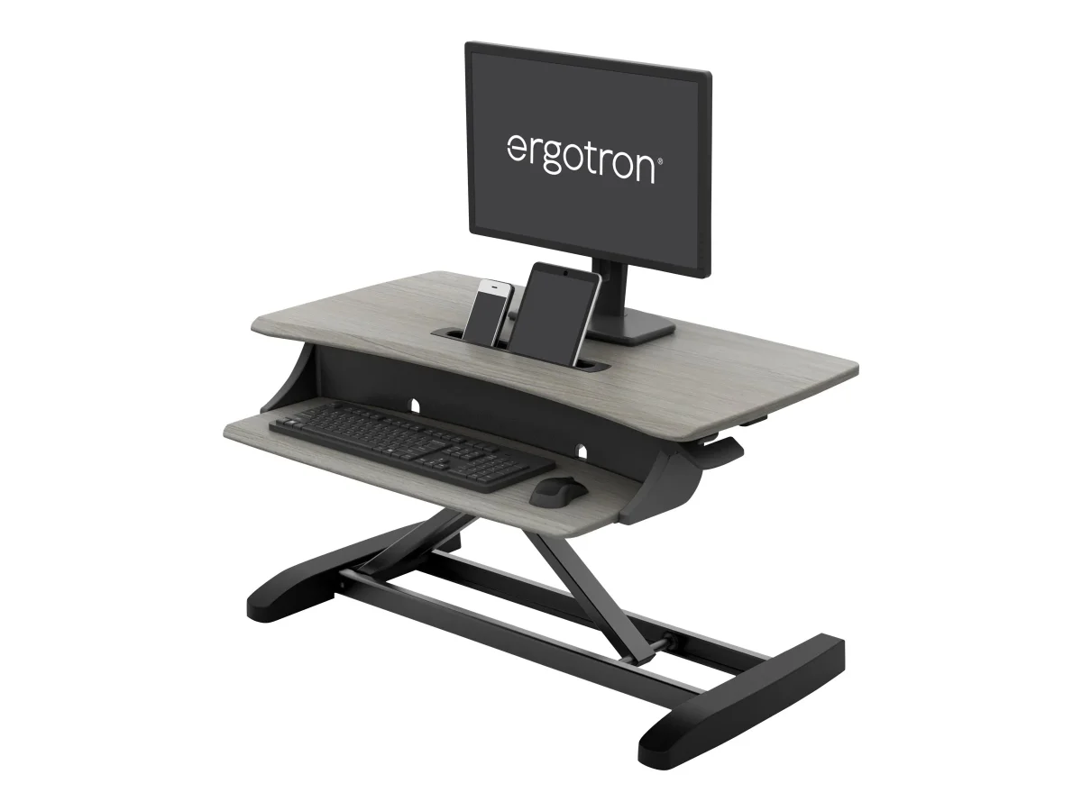 Mit dem WorkFit Z Mini lassen Sie Ihren Arbeitsplatz für sich arbeiten. Der kompakte Wandler verwandelt Ihre aktuelle Tischplatte in ein höhenverstellbares Stehpult. Er ist so konzipiert, dass Sie - sitzend oder stehend - optimal arbeiten, mit grauem Holzmaserungsfinish, das Ihrem Home-Office einen neuen Look gibt. Gönnen Sie sich einen Sitz-Steh-Schreibtisch, der zu Ihnen und der von Ihren bevorzugten Technologie passt, ob - einzelne Monitore, Tablets oder Laptops. Und der Aufbau ist wirklich sehr einfach 1-2-Z.
