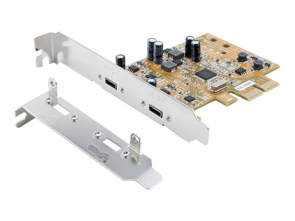 Die EX-12003 USB 3.1 (Gen2) PCIe (Gen3) (x2) Karte stellt zwei Externe Super-Speed+ USB 3.1 Ports mit C-Buchse zur Verfügung. Sie ist entwickelt worden um zwei weitere USB 1.1, 2.0, 3.0 und 3.1 Endgeräte an Ihre Workstation, Desktop oder Server anzuschliessen. Sie unterstützt USB 1.1 Low-Speed (1.5Mbps), Full-Speed (12Mpbs), USB 2.0 High-Speed (480Mbps), USB 3.0 Super-Speed (5Gbps) und USB 3.1 Super-Speed+ (10Gbps). Sie ist die perfekte Technologie für Externe Speicher Gehäuse, Digitale Kameras, Webcam, Scanner und mehr. Zur Unterstützung des 3.0A Stromes an den Externen USB 3.1 Ports, benötigt man keinen zusätzlichen Stromanschluss vom PC-Netzteil. Mit der EX-12003 wird ein Low Profile Bügel mitgeliefert für schmale Gehäuse bis zu einer maximaler Bauhöhe von 8cm eingesetzt werden.