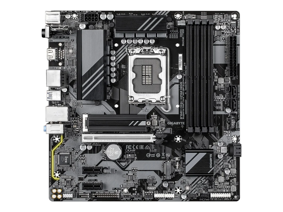 Gigabyte B760M DS3H WIFI6E GEN5 - Motherboard - micro ATX - LGA1700-Sockel - B760 Chipsatz - USB 3.2 Gen 1, USB-C 3.2 Gen2 - 2.5 Gigabit LAN, Wi-Fi 6E, Bluetooth - Onboard-Grafik (CPU erforderlich) - HD Audio (8-Kanal)
