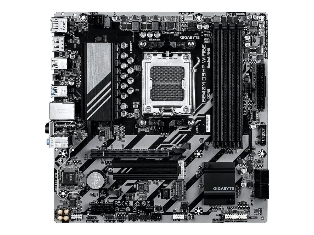 Gigabyte B840M D3HP WIFI6E - Motherboard - micro ATX - Socket AM5 - AMD B840 Chipsatz - USB-C 3.2 Gen 1, USB 3.2 Gen 1, USB 3.2 Gen 2 - Wi-Fi 6, Gigabit LAN, Bluetooth - Onboard-Grafik (CPU erforderlich) - HD Audio (8-Kanal)