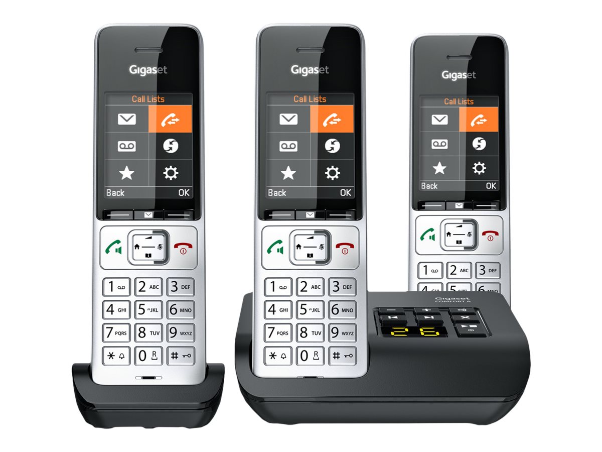 Gigaset 500A Comfort Trio - Schnurlostelefon - Anrufbeantworter - ECO DECT\GAP\CAT-iq - Silver Black + 2 zusätzliche Handsets