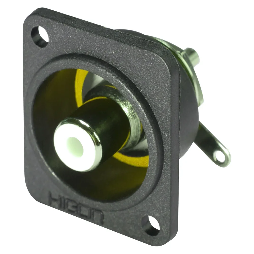 Die RCA/Cinch-Einbaubuchse ist eine 2-polige female-Buchse mit einem D-Flansch. Sie ist als Lötversion ausgeführt und verfügt über einen farbigen Isolationsring zur einfachen Identifizierung.