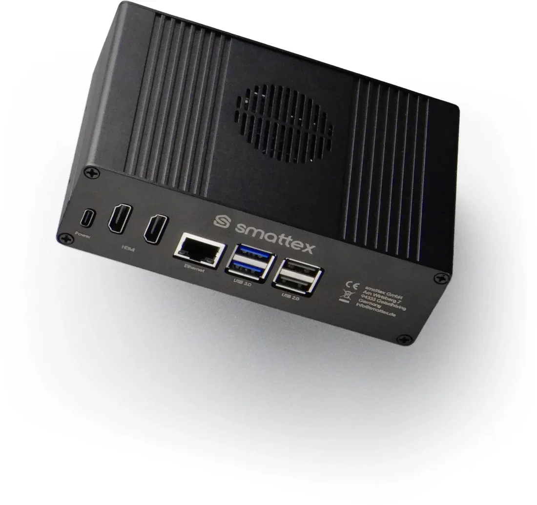 Sofort startklar mit Home Assistant! Keine Bastelei, keine Installation: Das smattex Plug & Play Set Black ist komplett vorbereitet. Einfach Strom und Netzwerk verbinden – schon läuft dein Home Assistant-System. Mit der leistungsstarken Kombination aus Raspberry Pi 5, NVMe-SSD und aktiver Kühlung ist das Set für den Dauerbetrieb optimiert – flüsterleise, stabil und mit enormer Performance. Perfekt für alle, die höchste Zuverlässigkeit und Geschwindigkeit in ihrem Smart Home wünschen. Lieferumfang - Home Assistant auf Basis des Raspberry Pi5 im robusten Aluminium Gehäuse mit aktiver, variabler Kühlung fertig montiert und vorinstalliert als Matter Controller mit Thread Border Router - Sonoff Dongle Plus MG24 (mit Thread Border Router Firmware vorbereitet) - USB-A Verlängerungskabel - Original Raspberry Pi5 Steckernetzteil mit 5,1V · 27W - Befestigungsset für optionale Wandmontage - 2-polige Klemme für alternative externe Spannungsversorgung 5V DC - Ethernetkabel Infos - Komplett montierte und eingerichtete Smart-Home-Zentrale – sofort nutzbar, kein Installationsaufwand, in Minuten (statt Stunden) startklar - Inklusive SONOFF MG24 USB-Dongle als Thread Border Router für Matter-over-Thread Geräte und USB Verlängerungskabel für ideale Positionierung der Thread Antenne mit 3dbi - Raspberry Pi 5 mit Broadcom BCM2712 4× Cortex-A76 @ 2,4 GHz Prozessor mit 4GB RAM im robusten Aluminium Gehäuse mit aktiver, variabler Kühlung für stabile Performance und größtmögliche Langlebigkeit, ideal für 24/7 Betrieb. - Schneller 128GB NVMe SSD-Speicher über PCIe (typ. 400–500 MB/s) für schnelle, lokale und sichere Datenverarbeitung (ohne Cloud) - Home Assistant vorinstalliert inkl. täglichen SSD-Backups und Add-ons - Stabile Gigabit-LAN-Anbindung vier USB-Ports (2x USB 2.0 2x USB 3.0) für Erweiterungen & Backups. Zwei HDMI Anschlüsse für externe Monitore und zusätzlichen Micro-SD-Karten-Slot - WiFi 5 (802.11ac) und Bluetooth 5.0 / BLE für maximale Konnektivität - Zukunftssicher: Updates direkt in der Home-Assistant-Oberfläche, riesiges Integrations-Ökosystem - Home Assistant bereits installiert – direkt startklar für Automatisierungen (Standard-Login: smattex / smattex ? Passwortänderung dringend empfohlen) - Unterstützt Matter, Thread & Zigbee (mit zusätzlichem Zubehör) für größtmögliche Kompatibilität Zukunftssicher durch Matter Das smattex Black ist voll auf den Matter-Standard ausgelegt. Mit dem integrierten SONOFF MG24 Thread Dongle fungiert es als kompletter Matter Controller und Thread Border Router. Damit steuerst du Geräte verschiedenster Hersteller in einem einheitlichen System – lokal, sicher und cloudfrei. Durch Matter bist du bestens vorbereitet auf die Zukunft des Smart Homes: ein Standard, alle Marken, volle Kontrolle. Thread & ZigBee flexibel nutzbar Standardmäßig ist Thread aktiv und bereits vollständig eingerichtet. Für die Nutzung von Zigbee-Geräten kann einfach ein zusätzlicher Zigbee-Dongle angeschlossen werden. Beide Funkstandards lassen sich flexibel einsetzen – für maximale Kompatibilität und Stabilität. Die mitgelieferte USB-Verlängerung sorgt für eine optimale Antennenposition und somit beste Funkabdeckung. Qualität „Made in Germany“ Jedes smattex Plug & Play Set Black wird in Deutschland von Hand eingerichtet, getestet und vorkonfiguriert. Von der Hardware-Montage bis zur Software-Optimierung stellen wir sicher, dass du ein perfekt funktionierendes System erhältst. So kannst du sofort starten – und bei Fragen steht dir unser Support persönlich zur Seite. Alle Komponenten sind für Langlebigkeit ausgelegt und garantieren zuverlässigen 24/7-Betrieb. Vorgefertigte Software-Konfiguration - Benutzerkonto erstellt (smattex / smattex) - Erweiterter Modus aktiviert - Strenge Datenschutzeinstellungen gesetzt - Automatisches Backup täglich auf interne SSD (Erweiterung empfohlen) - Vorinstallierte Add-ons: Tailscale (optional für sicheren Fernzugriff), Visual Studio Code (zur Bearbeitung von configuration.yaml & weiteren Dateien), OpenThread Border Router, Matter Server, Energiemanagement vorbereitet: Unterstützung für Funk-Lesekopf digitaler Stromzähler EDL21-Integration mit 1-Sekunden-Intervall (statt 60s) Konfiguration für Live-Verbrauchsdaten (Import/Export getrennt erfasst, via Integralsensor in Energiewerte umgerechnet) Energiedashboard mit Verbrauchs- und Einspeisungsübersicht vorkonfiguriert