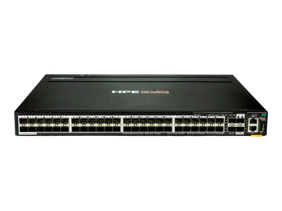 Der HPE Aruba Networking CX 6300M 48p SFP-Switch wurde für moderne Netzwerkanforderungen mit einem robusten Leistungsprofil entwickelt. Ausgestattet mit 48 Gigabit-SFP-Ports und zusätzlichen Uplink-Funktionen bietet er flexible Konnektivitätsoptionen und eine hohe Datenübertragungsgeschwindigkeit. Der Switch ist mit maximal 10 Einheiten stapelbar und ermöglicht so die Skalierbarkeit in wachsenden Netzwerkumgebungen. Mit Funktionen wie Quality of Service (QoS), Rapid Per-VLAN Spanning Tree Plus (PVRST+) und Ethernet Virtual Private Network (EVPN) gewährleistet dieser Switch ein effizientes Verkehrsmanagement und erhöhte Sicherheit für verschiedene Anwendungen. Die Verwaltungsfunktionen des HPE Aruba Networking CX 6300M sind fortschrittlich und ermöglichen die Fernsteuerung über verschiedene Protokolle, darunter SNMP und CLI. Er nutzt einen leistungsstarken ARM Cortex-A72-Prozessor mit einer Taktrate von 1,8 GHz, gepaart mit 8 GB RAM und 32 GB Flash-Speicher für optimale Leistung. Durch die Unterstützung zahlreicher Netzwerkstandards gewährleistet er Kompatibilität und umfassende Unterstützung für verschiedene Netzwerkkonfigurationen und ist damit eine vielseitige Lösung für Konnektivitätsherausforderungen auf Unternehmensebene.