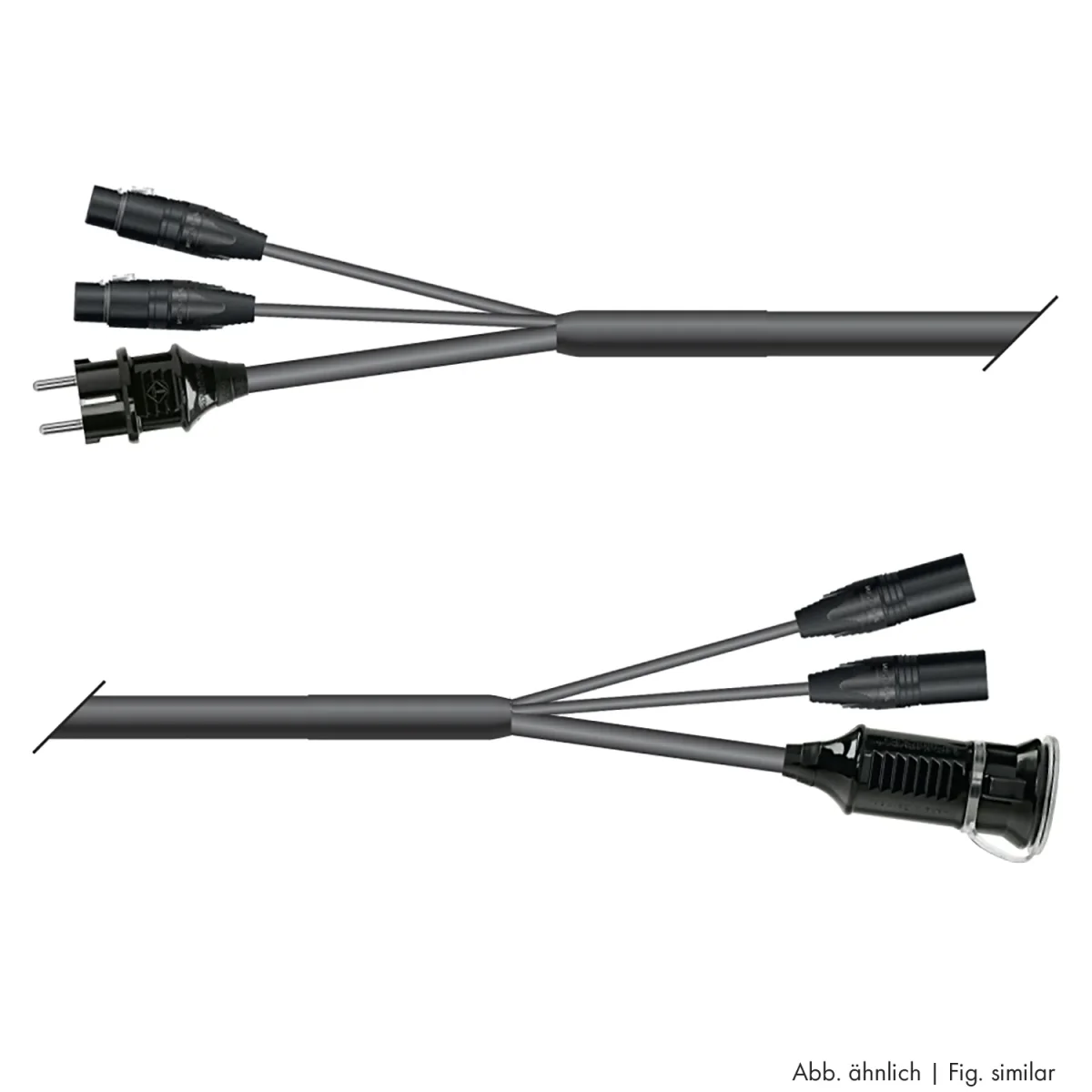 für die einfache Vernetzung von Geräten, die sowohl DMX-Signal, als auch 230 V Netzspannung benötigen (z.B. DMX-Nebelmaschinen, Moving-Lights usw.). Unser digitales DMX512 Multipair-Kombikabel SC-MONOLITH 1 bestücken wir einerseits mit einem MENNEKES Schukostecker bzw. powerCON® Verbinder und einem XLR 3-pol bzw. 5-pol Verbinder von NEUTRIK® – und an der Gegenseite mit einer MENNEKES Schukobuchse, Kaltgerätebuchse bzw. powerCON® NAC3FCB und einem XLR 3-pol bzw. 5-pol Verbinder. Als Bildbeispiele sehen Sie die Versionen MHDC-00/01 und MHDF-00/01. Unsere DMX Kabel besitzen sehr niedrige Kapazitätswerte und eignen sich dadurch auch hervorragend für die Audio- bzw. AES/EBU 110 O-Übertragung.
