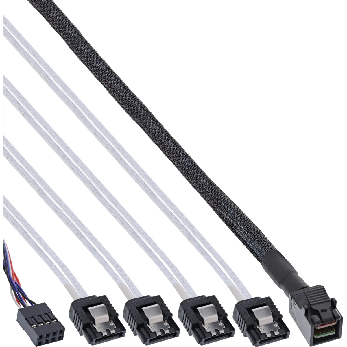 - Mini SAS HD Stecker (SFF-8643) zu 4x SATA Stecker + Sideband Stecker