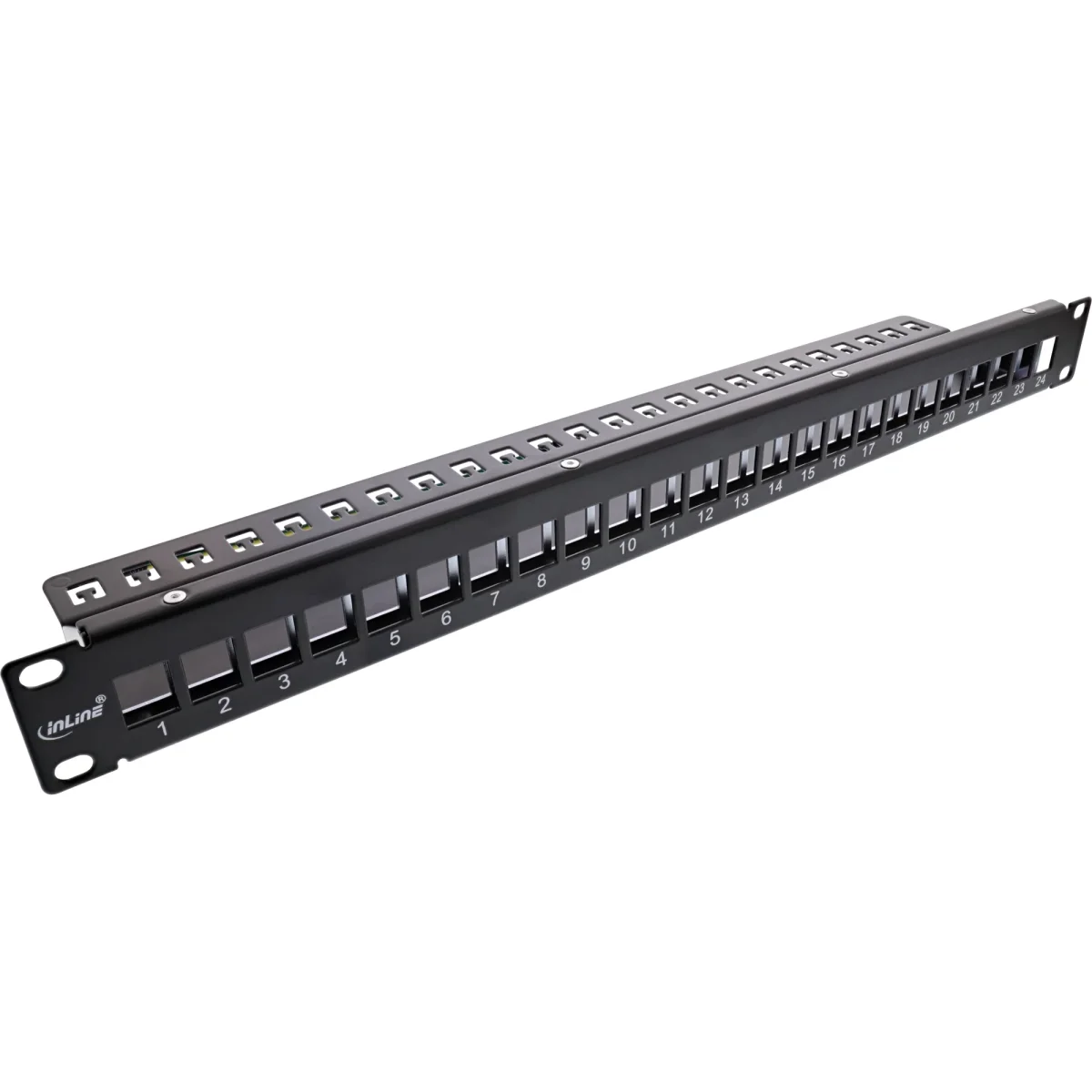 InLine® Patchfeld 24-fach, Keystone Leerblech Patchpanel, 19", 1HE, schwarz