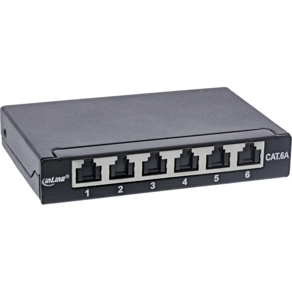 InLine® Patchfeld Cat.6A 0,5HE 6-fach, Tisch/Wand/Hutschiene schwarz Staubschutz