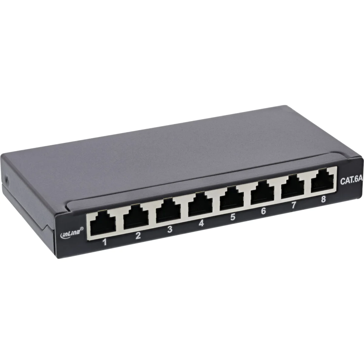 InLine® Patchfeld Cat.6A 8-fach 0,5HE Tisch/Wand-Montage, schwarz, RAL9005