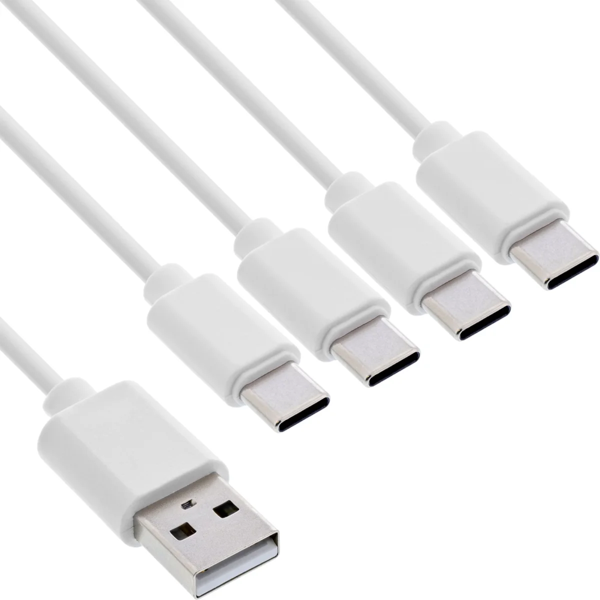 InLine® USB 4in1 Y-Ladekabel, 1x USB-A Stecker an 4x USB-C Stecker, weiß, 2m